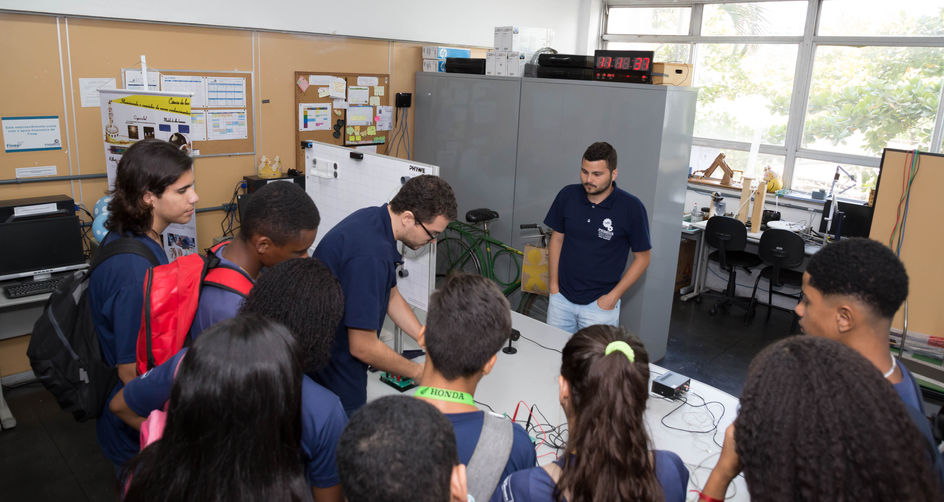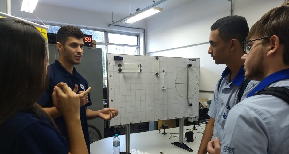 Nossa equipe recebeu o Colégio Manuel Marinho em nosso laboratório. Ilustramos assuntos de física como ótica, ondas e vibrações, ondas na corda entre outros assuntos.